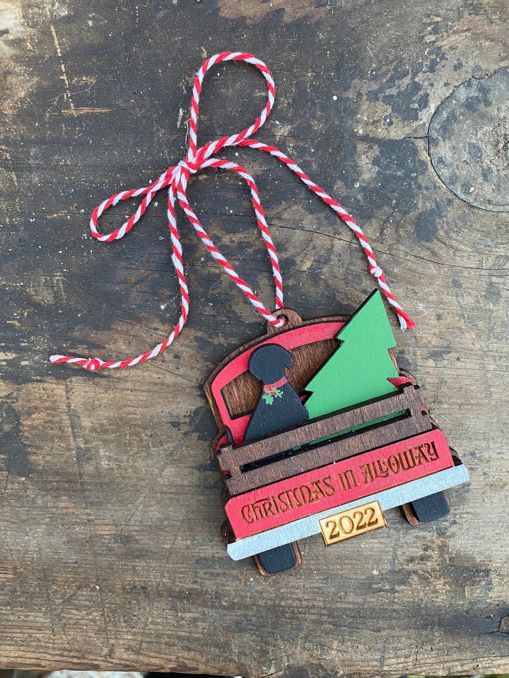 Little Red Truck with Dog & Tree Personalized Christmas Ornament